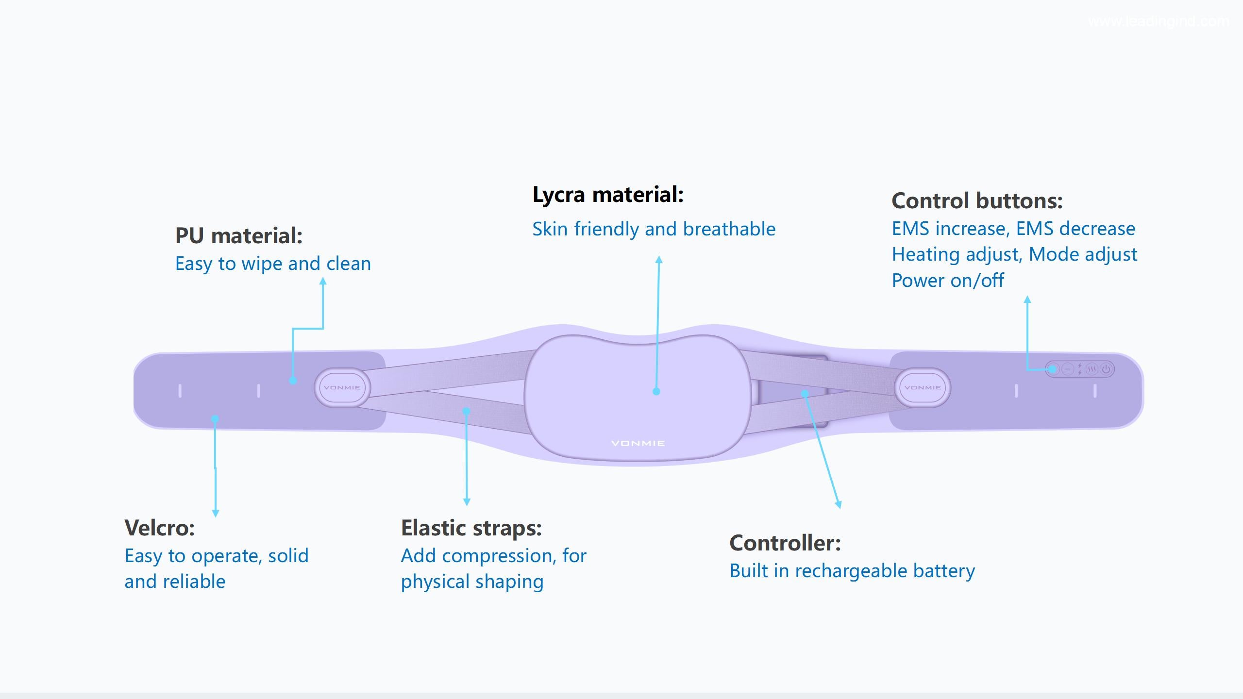 7 selectable modes with variable frequency, 15 adjustable EMS levels from low to high, to meet different needs of using. So that you can adjust to the comfortable modes and levels you like.