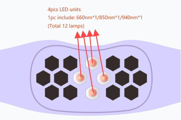 4pcs 660nm/850nm/940nm LED units (total 12 lamps)