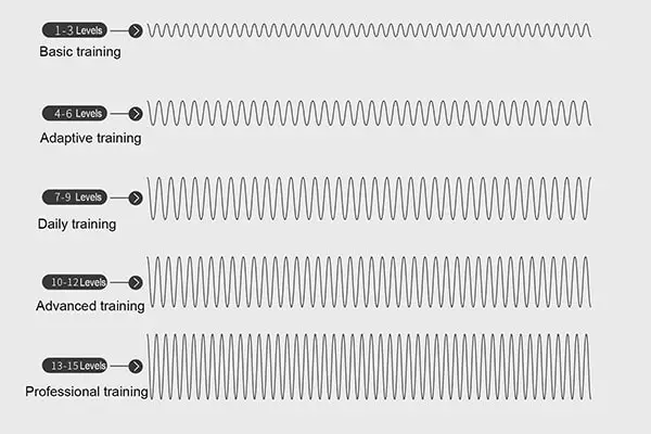2 selectable modes with variable frequency, 15 adjustable EMS levels from low to high, to meet different needs of using. So that you can adjust to the comfortable modes and levels you like.