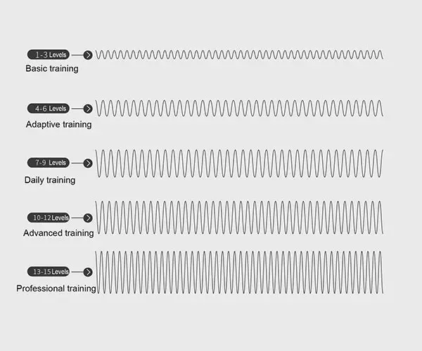 7 selectable modes with variable frequency, 15 adjustable EMS levels from low to high, to meet different needs of using. So that you can adjust to the comfortable modes and levels you like.
